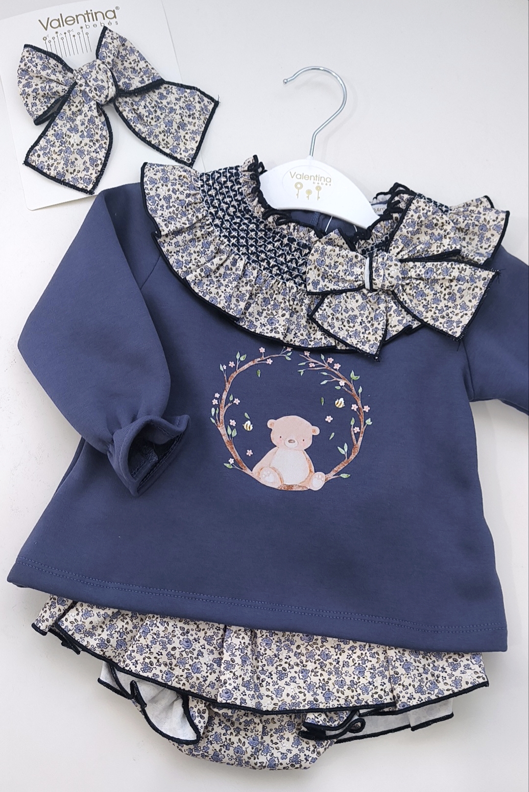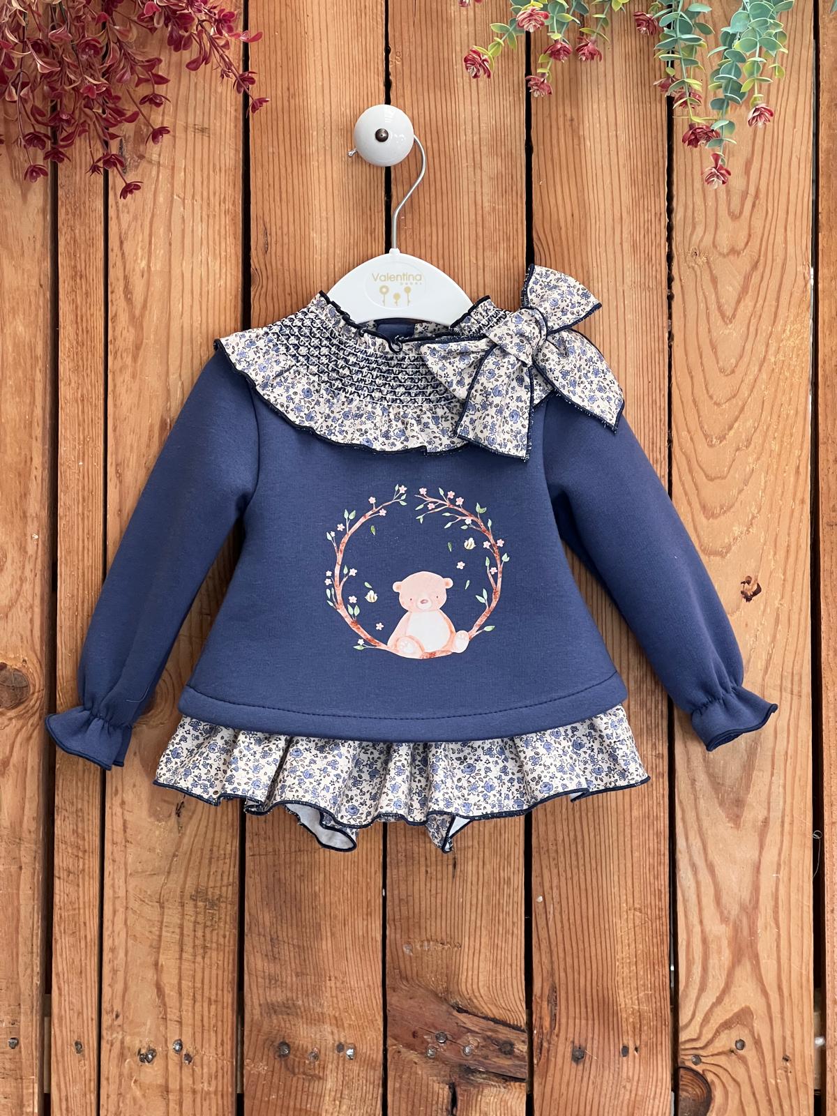 Conjunto sudadera y braguitas osito azul marino Valentina cantidad