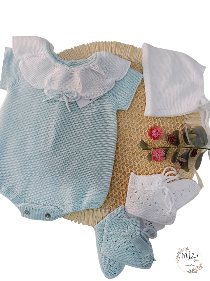 Pelele unisex verde agua cuello lacito Sigar cantidad